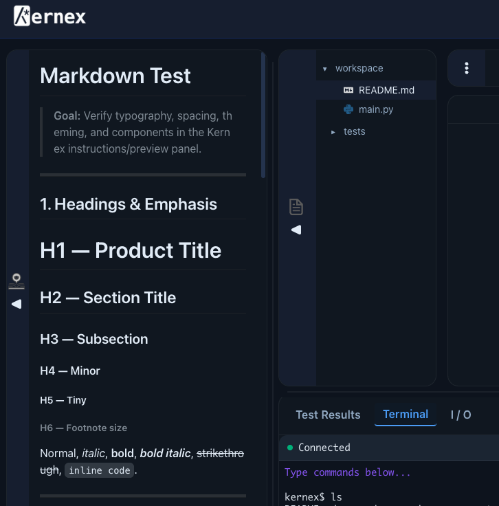 A seamless environment combining file management, code editing, and secure, sandboxed terminal access. Built to mirror professional workflows while remaining accessible for beginners.